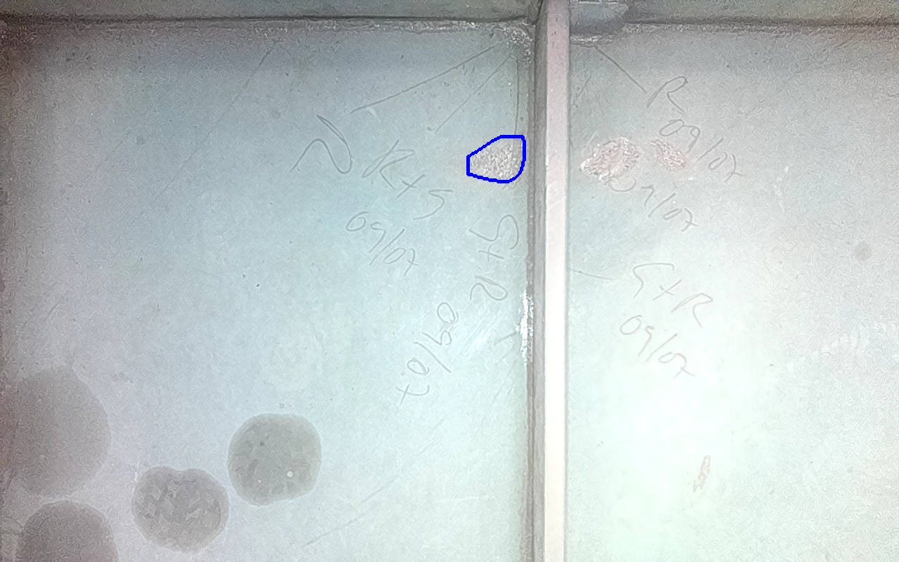Rayaduras o zonas de metal expuestas con productos de óxido débilmente adherido. |
