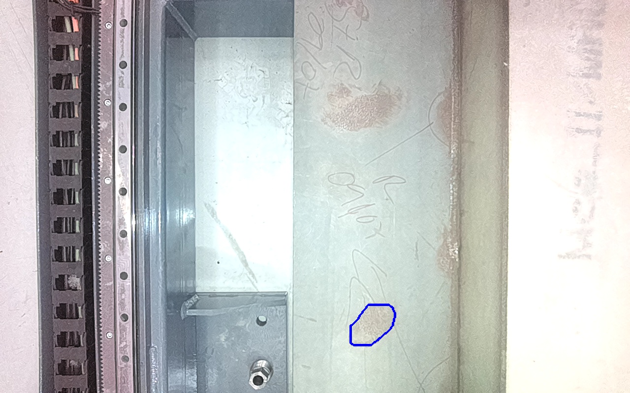 Rayaduras o zonas de metal expuestas con productos de óxido débilmente adherido. |
