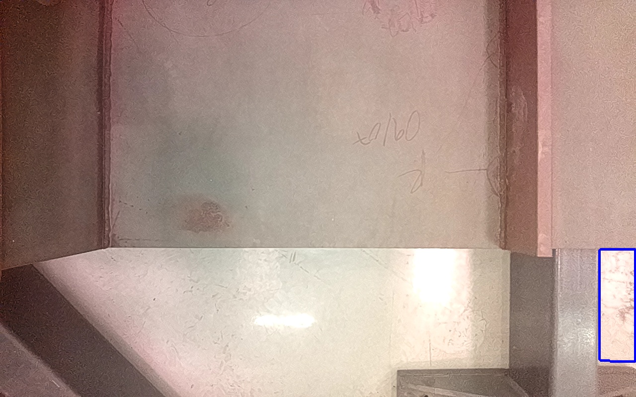 Rayaduras o zonas de metal expuestas con productos de óxido débilmente adherido. |