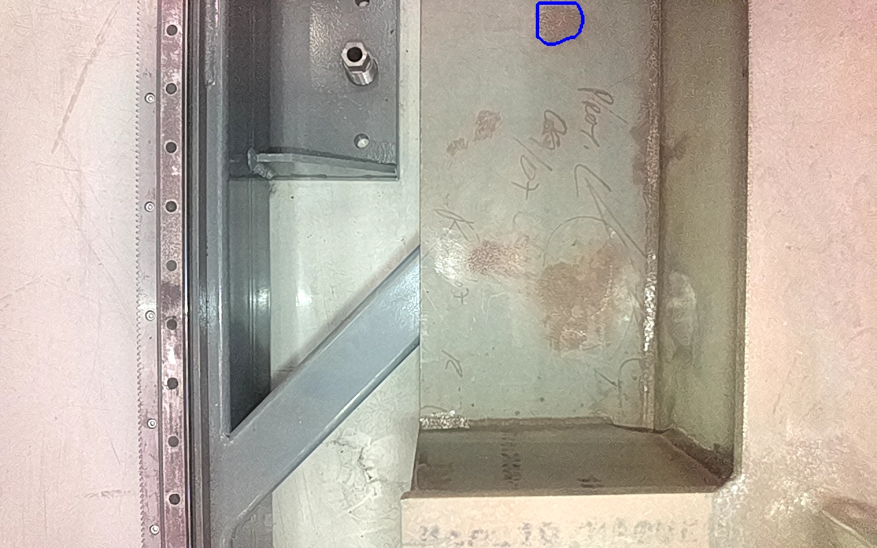 Rayaduras o zonas de metal expuestas con productos de óxido débilmente adherido. |