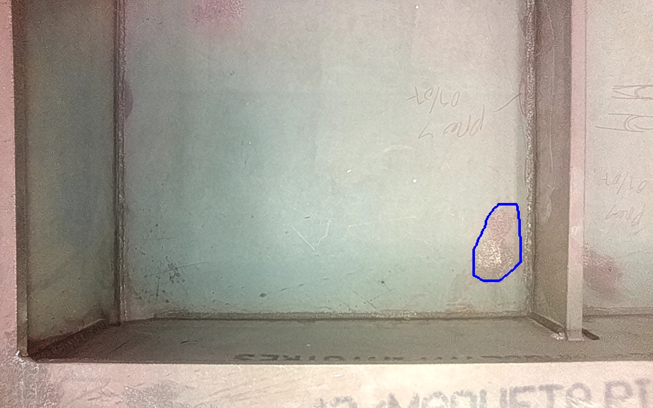 Rayaduras o zonas de metal expuestas con productos de óxido débilmente adherido. |
