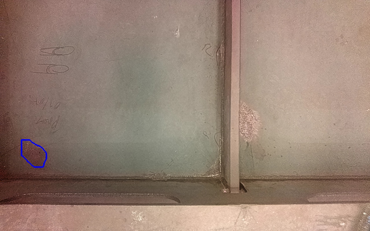 Rayaduras o zonas de metal expuestas con productos de óxido débilmente adherido. |