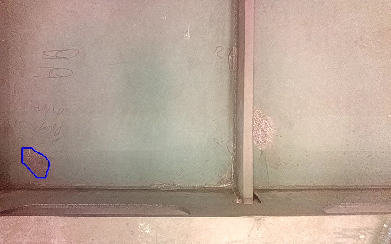 Rayaduras o zonas de metal expuestas con productos de óxido débilmente adherido. |