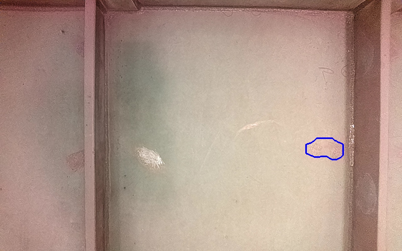 Rayaduras o zonas de metal expuestas con productos de óxido débilmente adherido. |