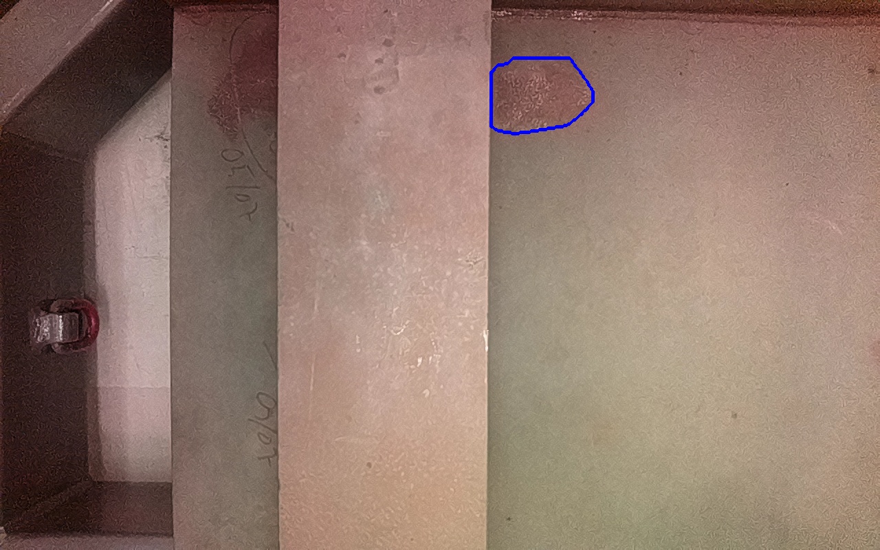 Rayaduras o zonas de metal expuestas con productos de óxido débilmente adherido. |