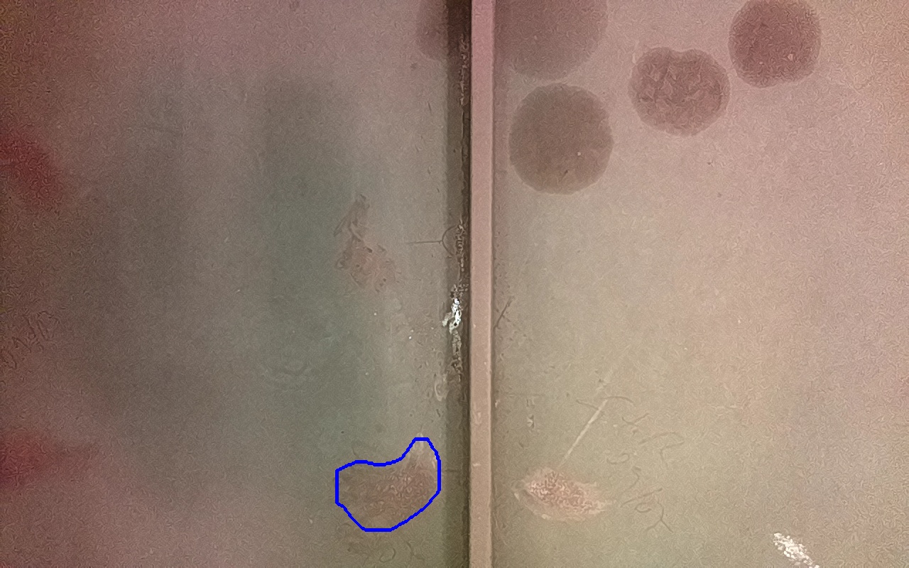 Rayaduras o zonas de metal expuestas con productos de óxido débilmente adherido. |