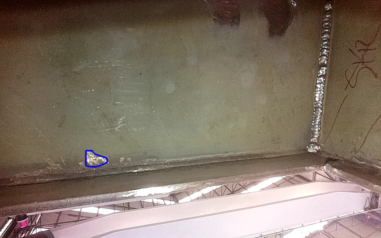 Rayaduras o zonas de metal expuestas con productos de óxido débilmente adherido. |