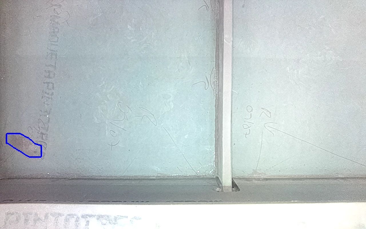 Rayaduras o zonas de metal expuestas con productos de óxido débilmente adherido. |