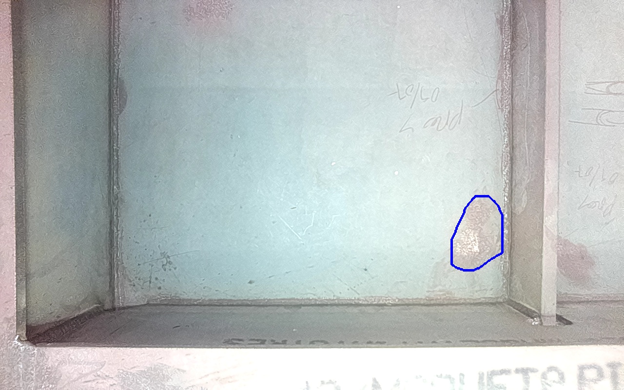 Rayaduras o zonas de metal expuestas con productos de óxido débilmente adherido. |
