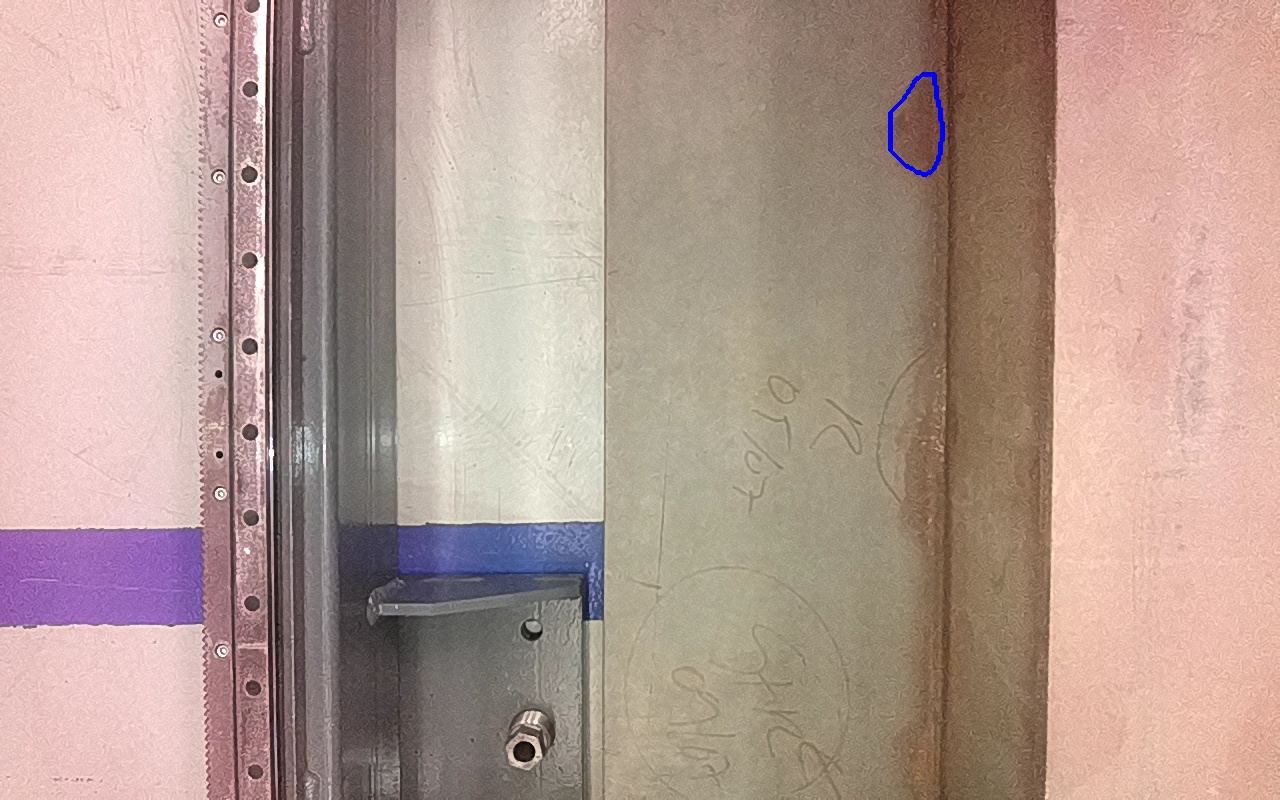 Rayaduras o zonas de metal expuestas con productos de óxido débilmente adherido. |
