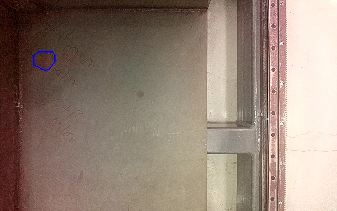 Rayaduras o zonas de metal expuestas con productos de óxido débilmente adherido. |
