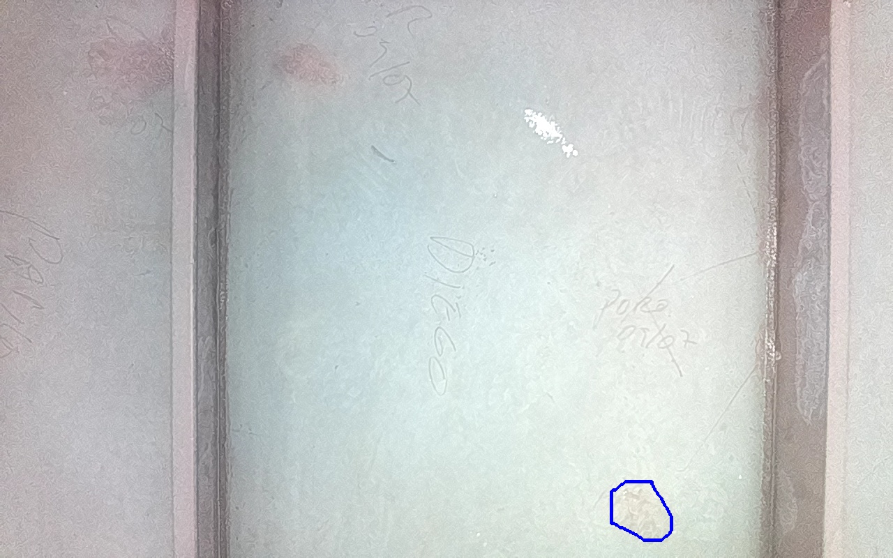Rayaduras o zonas de metal expuestas con productos de óxido débilmente adherido. |