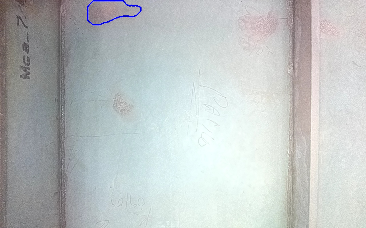 Rayaduras o zonas de metal expuestas con productos de óxido débilmente adherido. |
