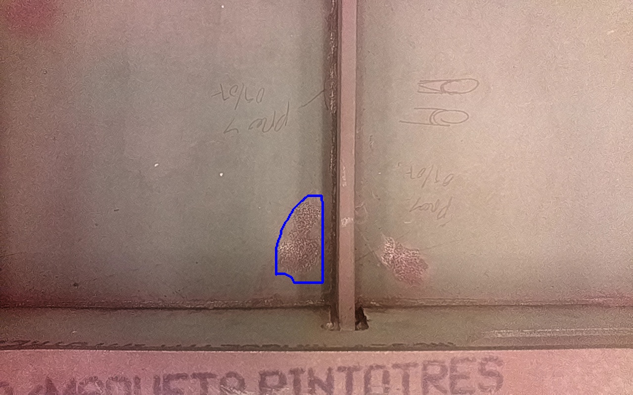 Rayaduras o zonas de metal expuestas con productos de óxido débilmente adherido. |
