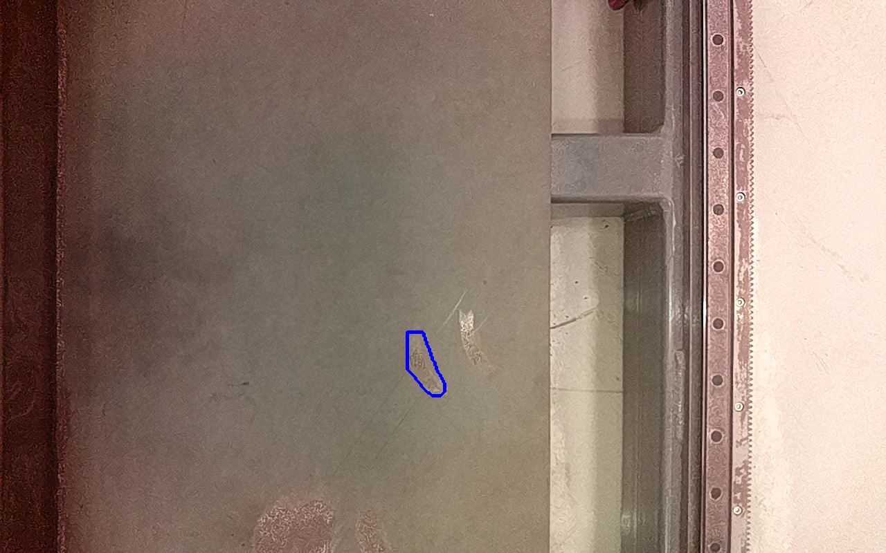 Rayaduras o zonas de metal expuestas con productos de óxido débilmente adherido. |