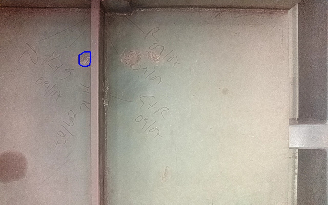 Rayaduras o zonas de metal expuestas con productos de óxido débilmente adherido. |