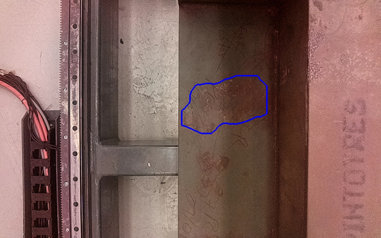 Rayaduras o zonas de metal expuestas con productos de óxido débilmente adherido. |