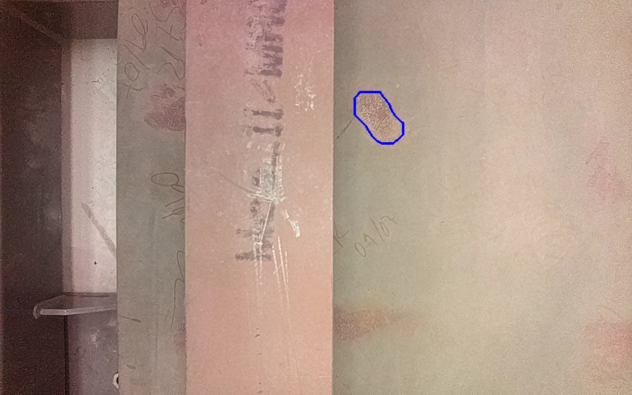 Rayaduras o zonas de metal expuestas con productos de óxido débilmente adherido. |