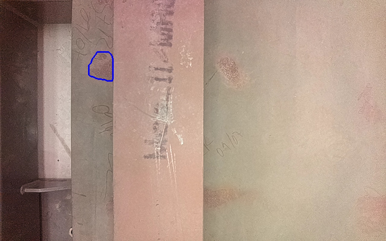 Rayaduras o zonas de metal expuestas con productos de óxido débilmente adherido. |