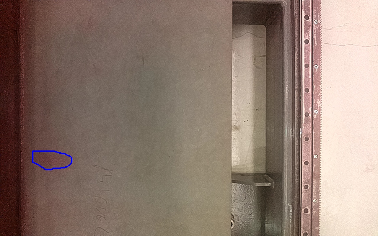Rayaduras o zonas de metal expuestas con productos de óxido débilmente adherido. |