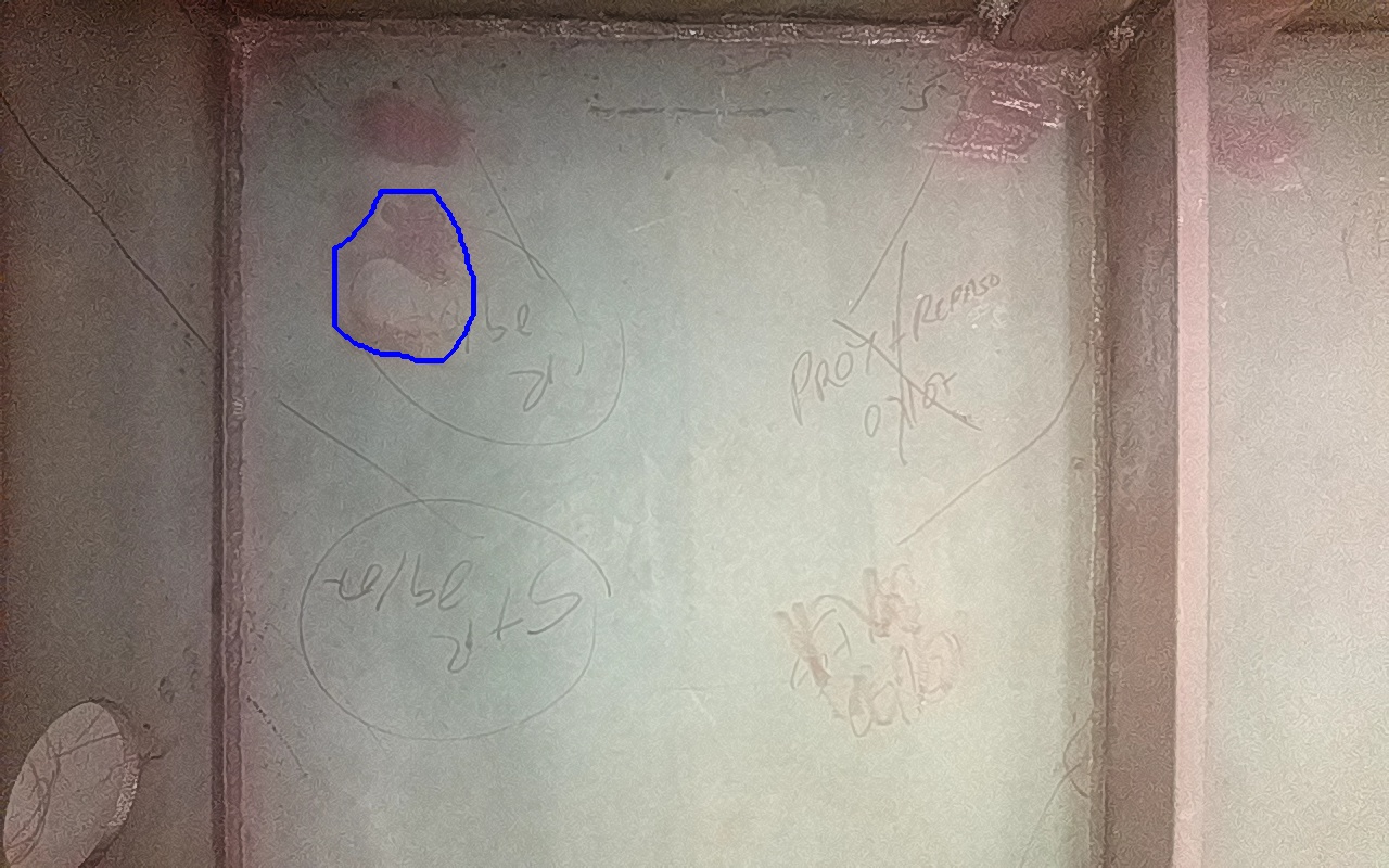 Rayaduras o zonas de metal expuestas con productos de óxido débilmente adherido. |