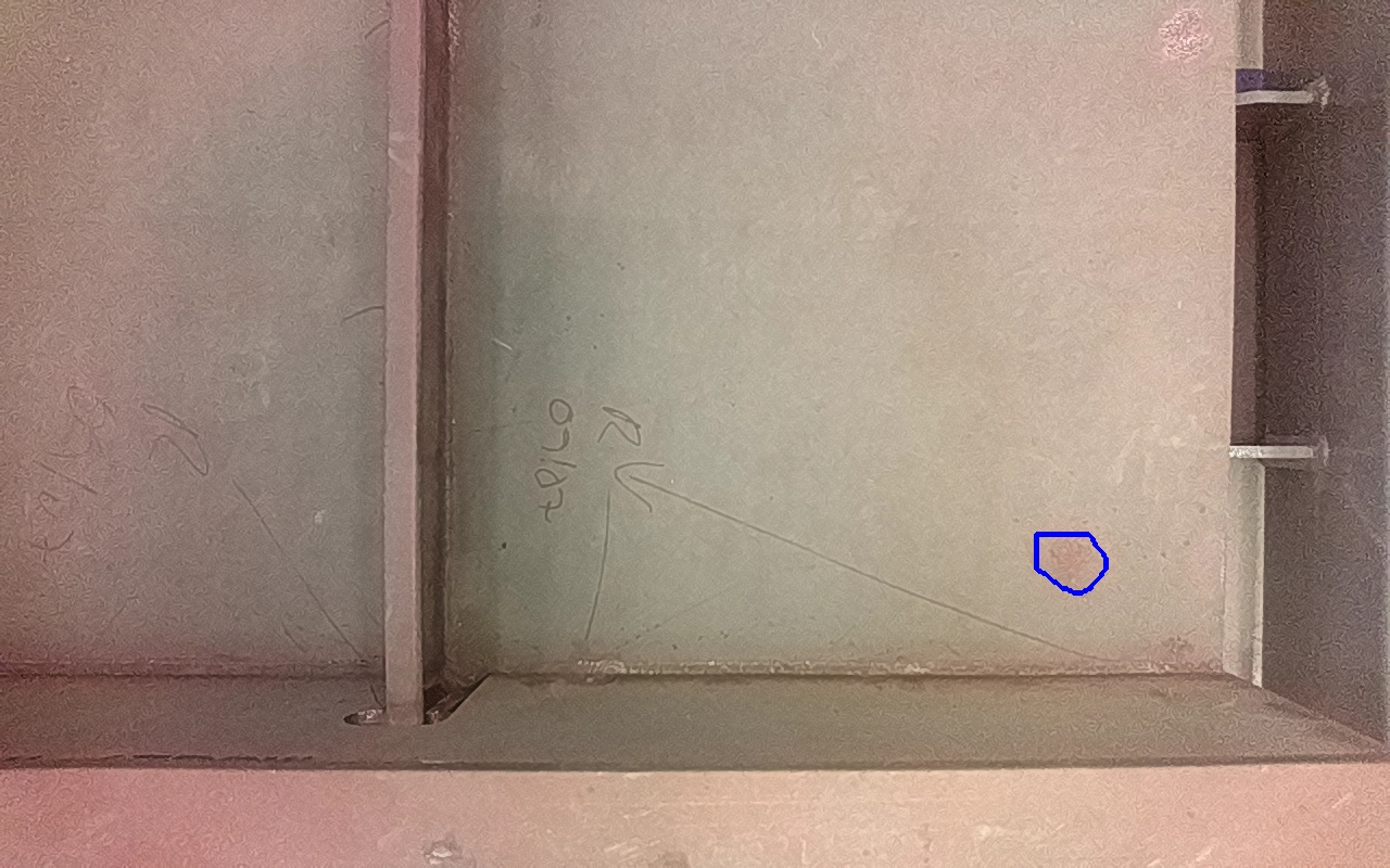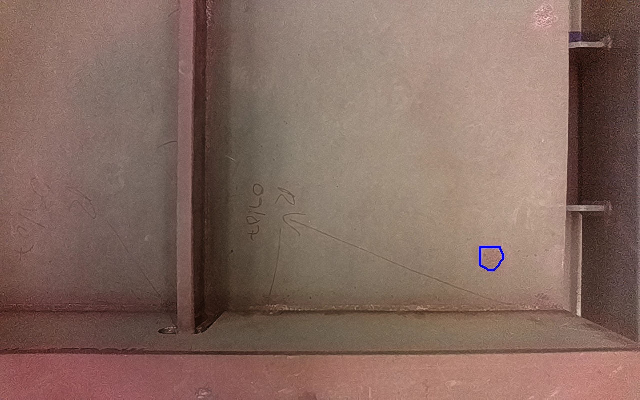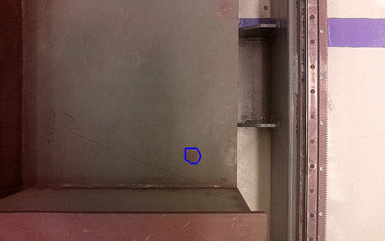 Rayaduras o zonas de metal expuestas con productos de óxido débilmente adherido.