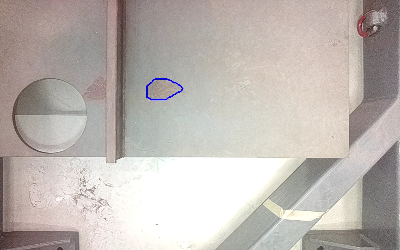 Rayaduras o zonas de metal expuestas con productos de óxido débilmente adherido.