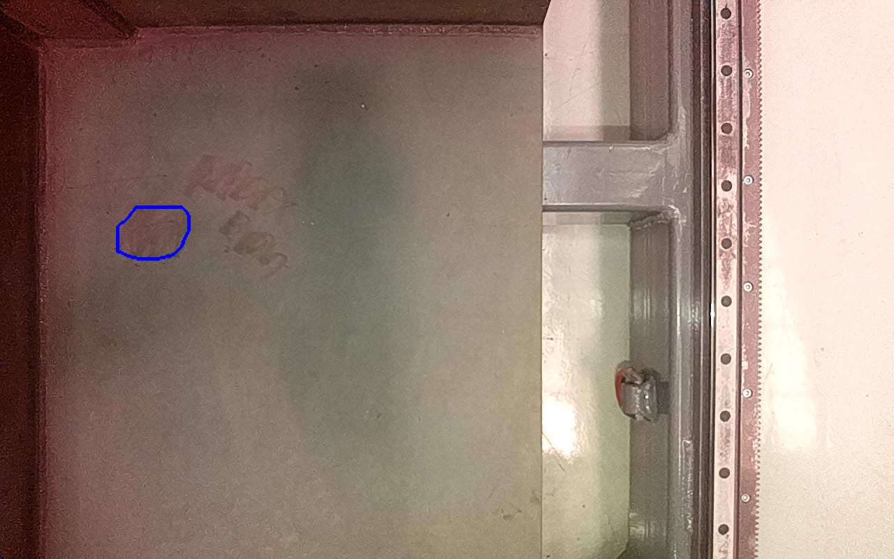 Rayaduras o zonas de metal expuestas con productos de óxido débilmente adherido.