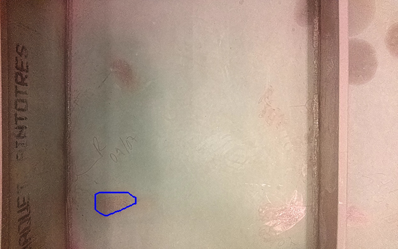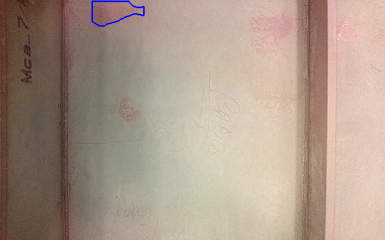 Rayaduras o zonas de metal expuestas con productos de óxido débilmente adherido.