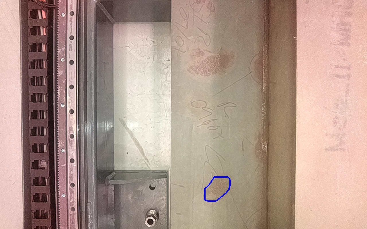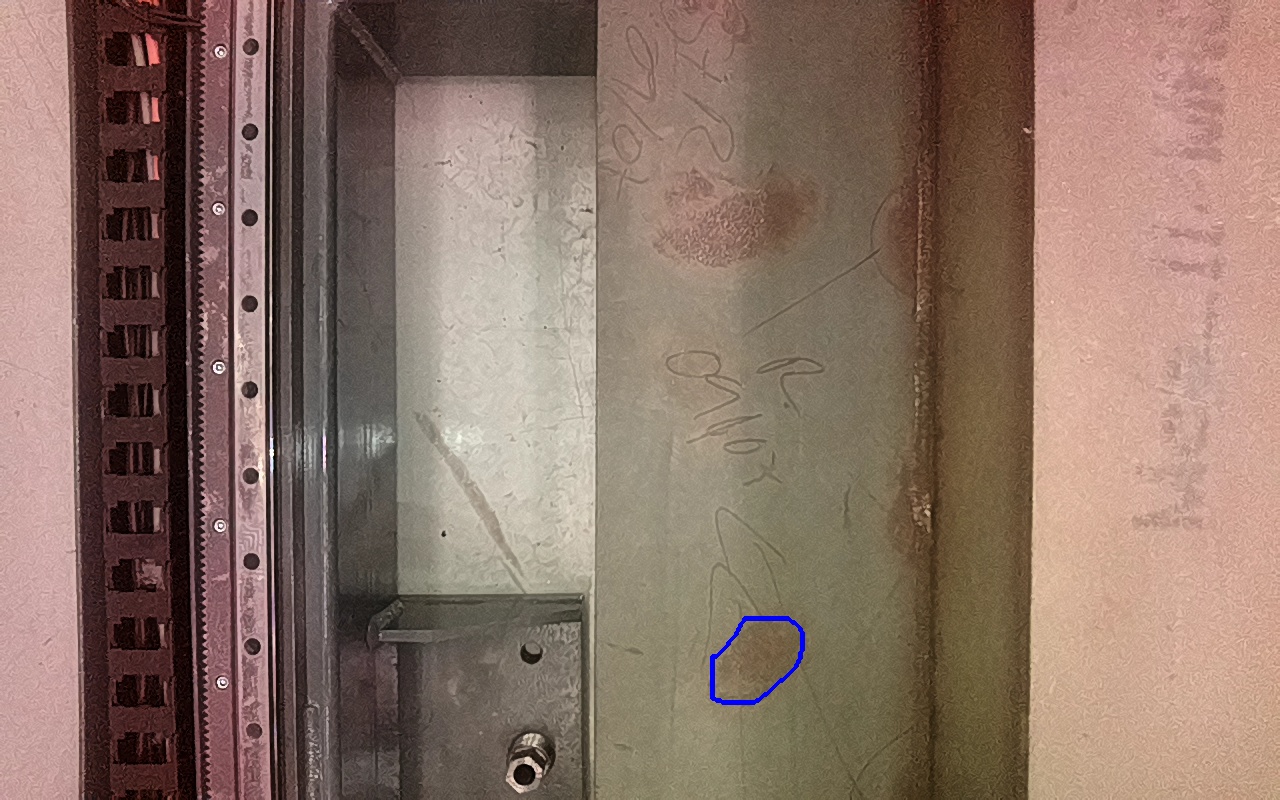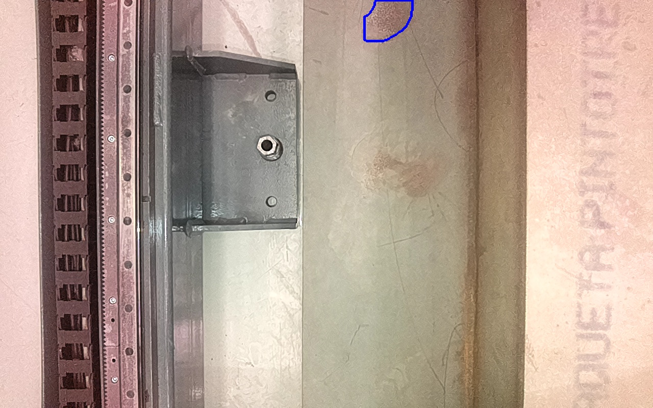 Rayaduras o zonas de metal expuestas con productos de óxido débilmente adherido.