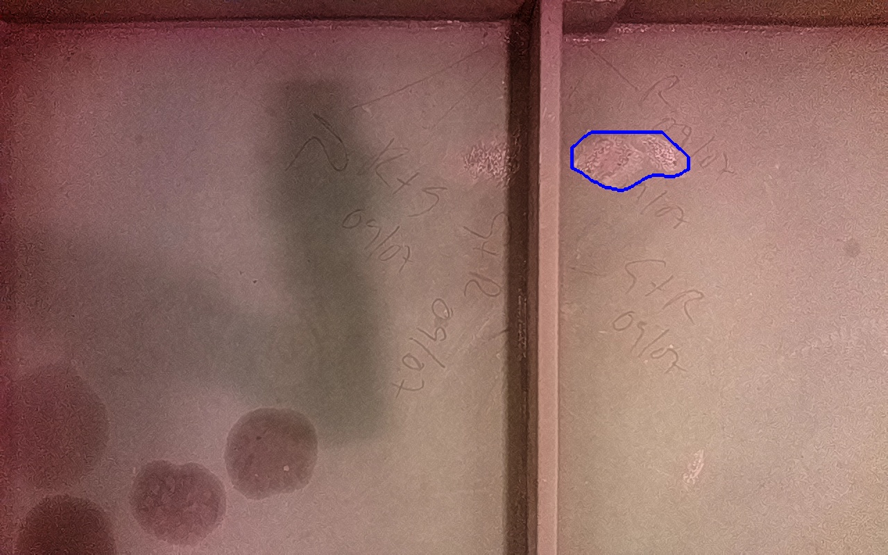 Rayaduras o zonas de metal expuestas con productos de óxido débilmente adherido.