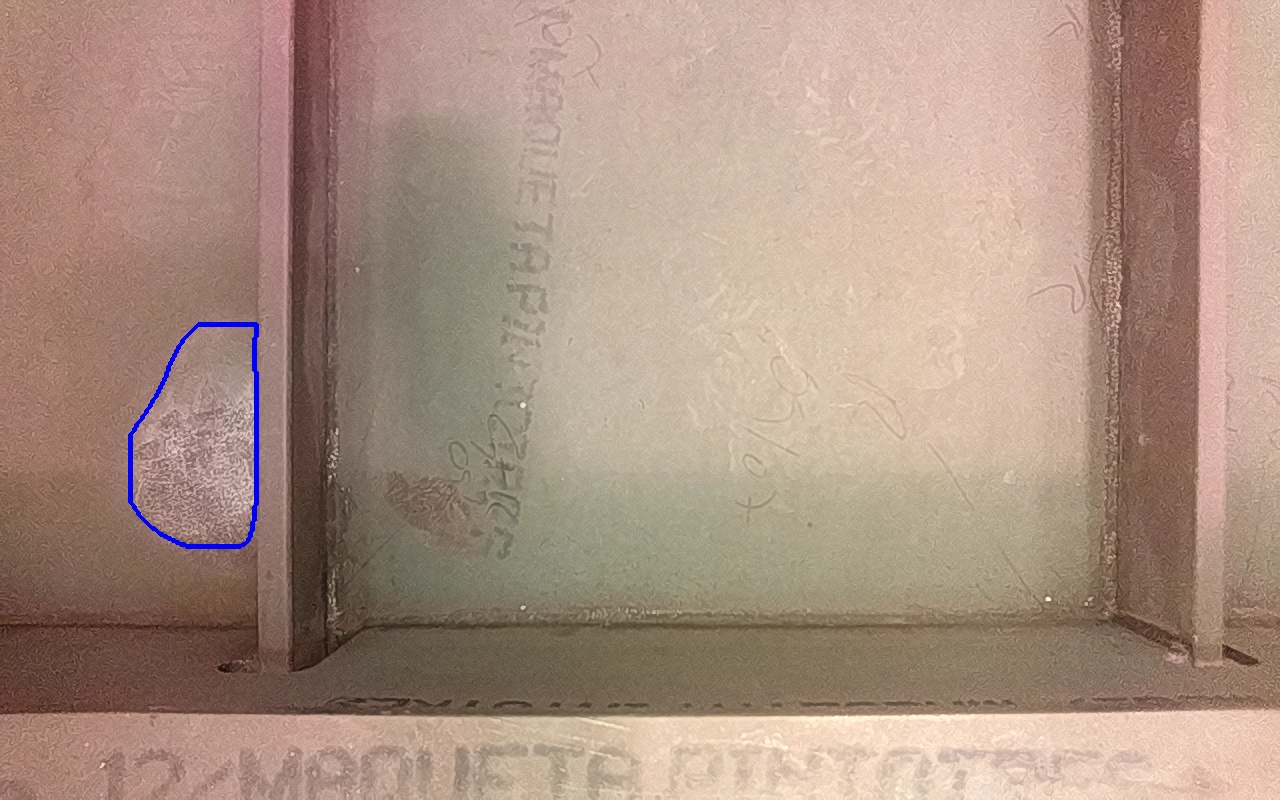 Daños por procesos térmicos donde el RPT se degrada dejando material que no está firmemente adherido. |
