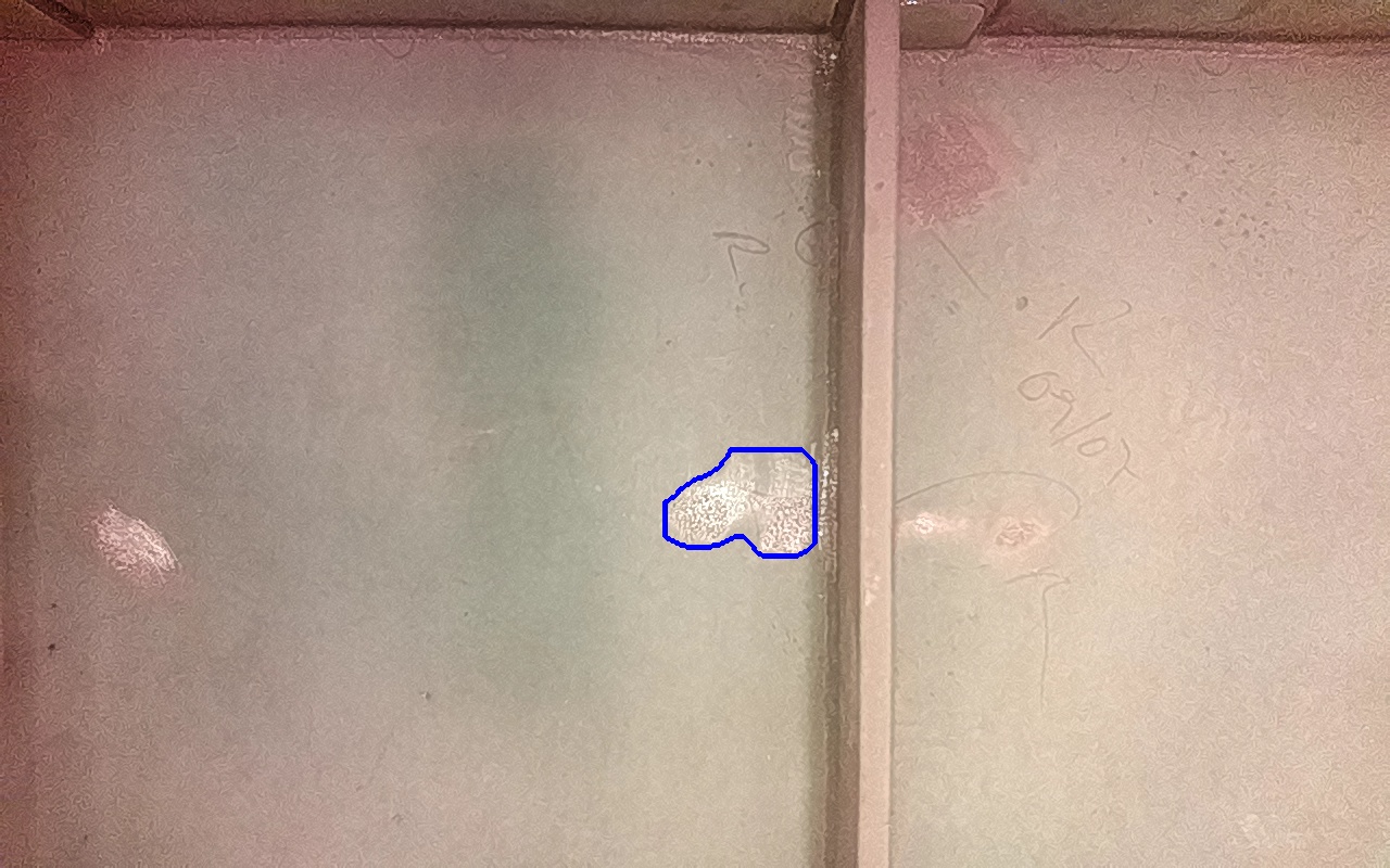 Rayaduras o zonas de metal expuestas con productos de óxido débilmente adherido.