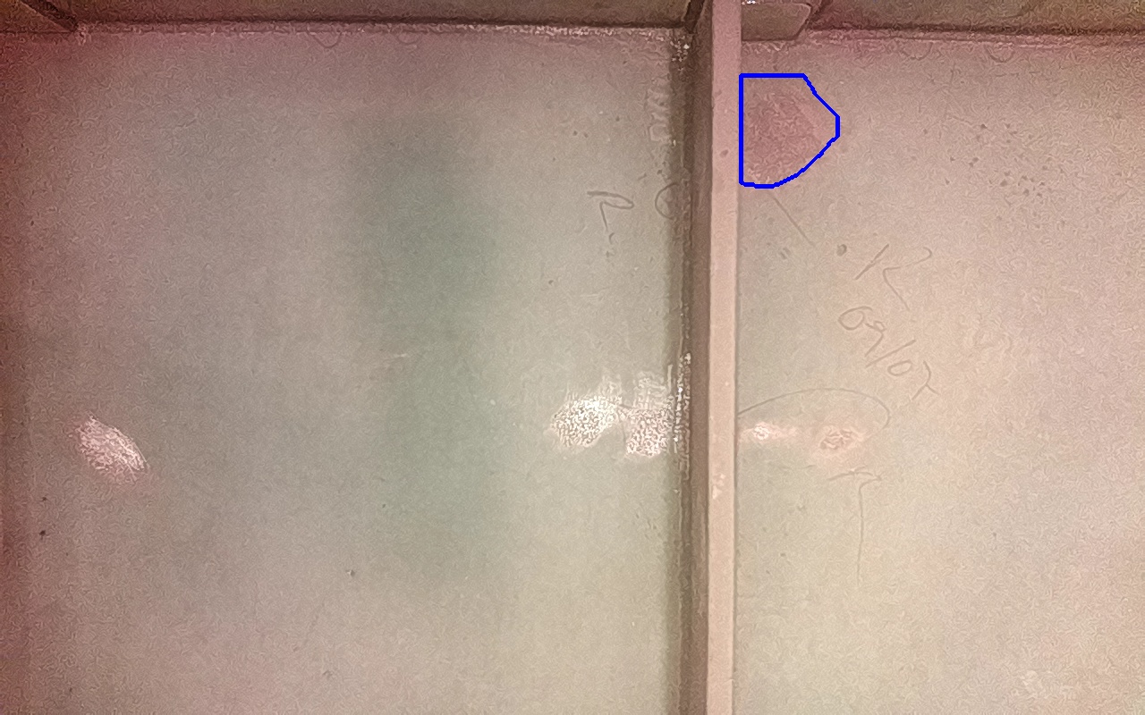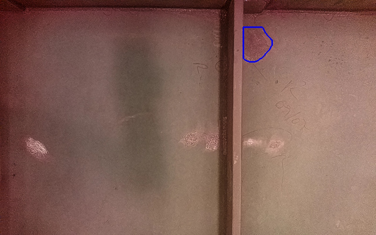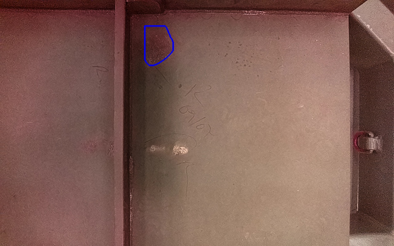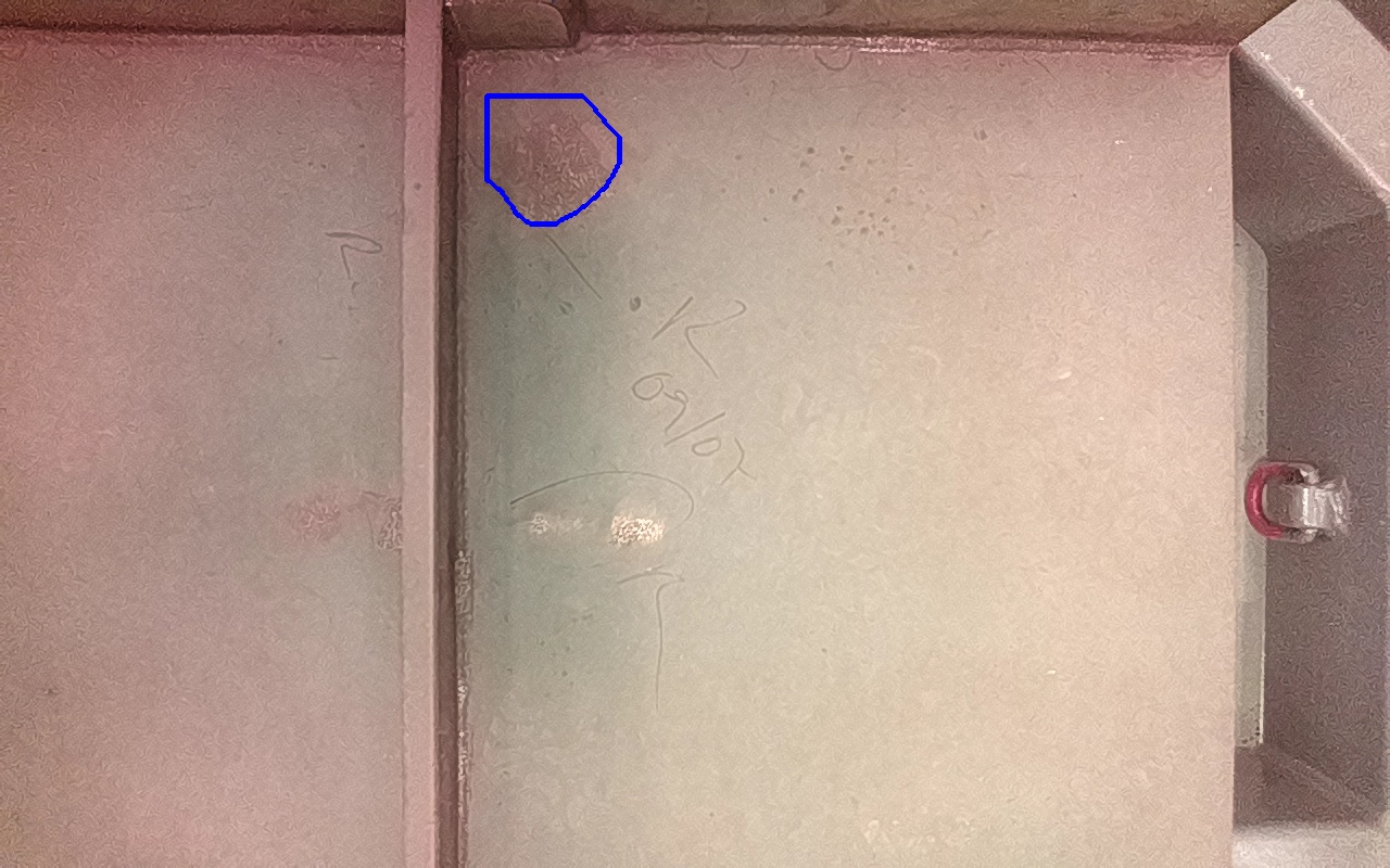 Rayaduras o zonas de metal expuestas con productos de óxido débilmente adherido.