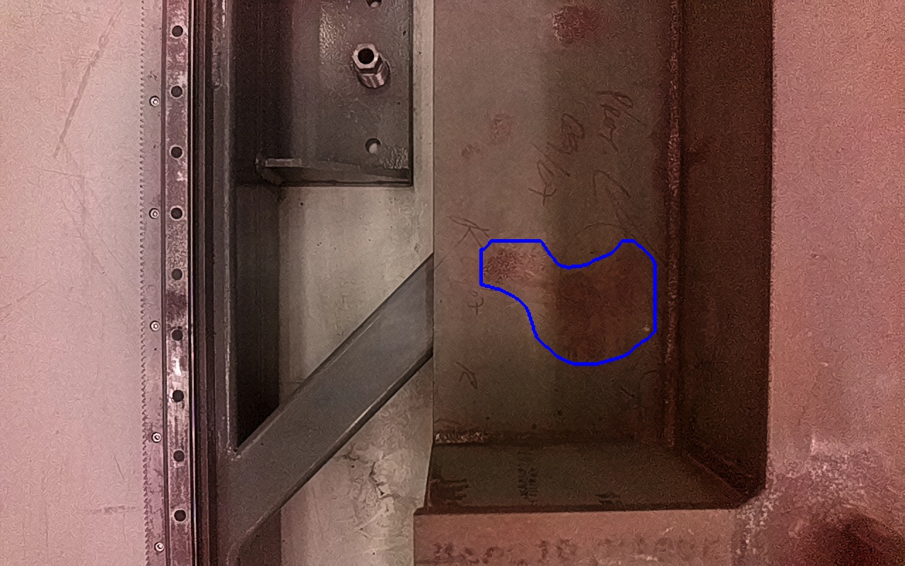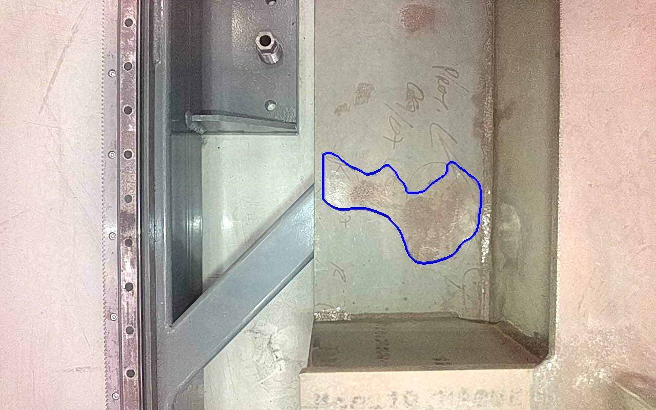Rayaduras o zonas de metal expuestas con productos de óxido débilmente adherido.
