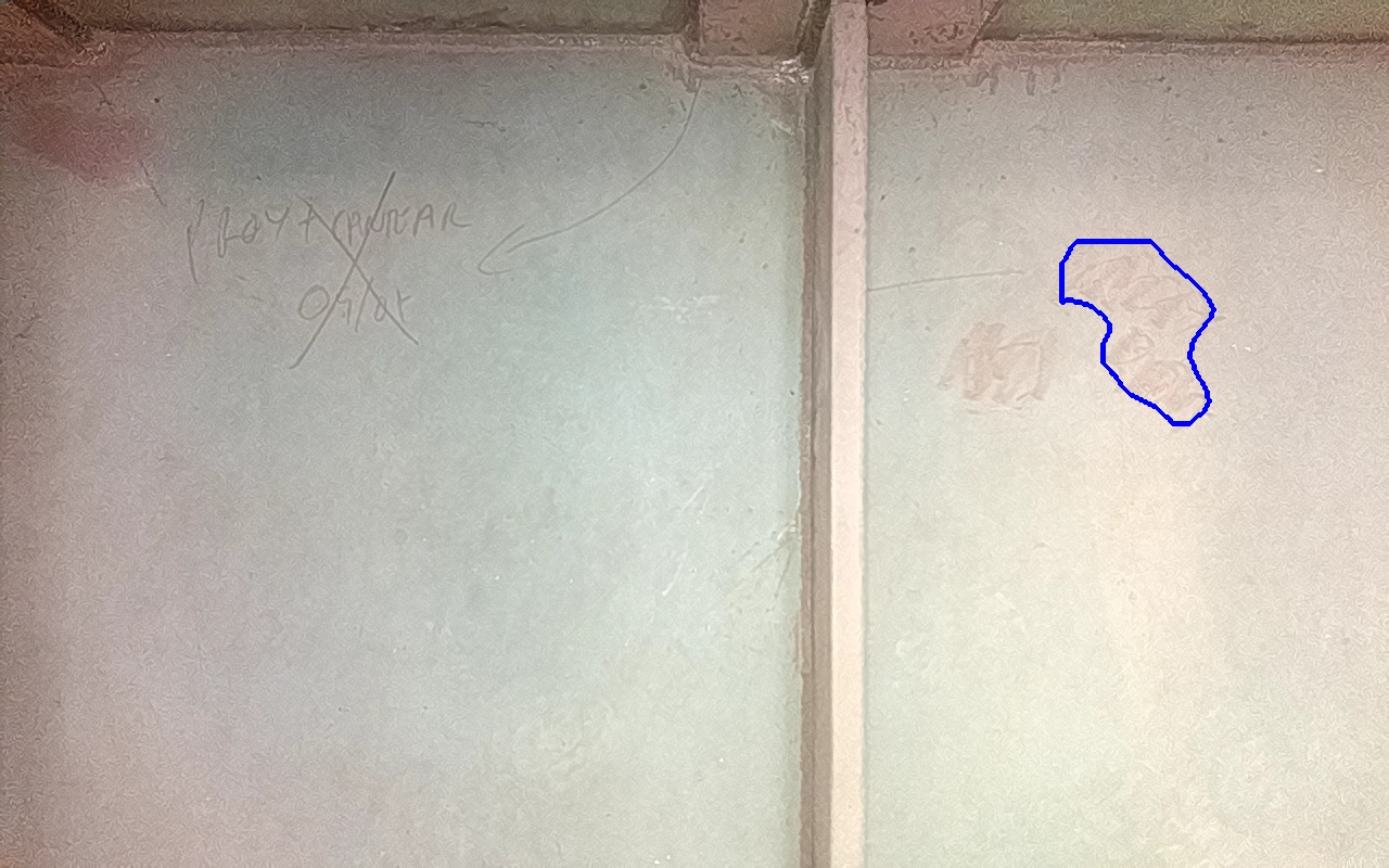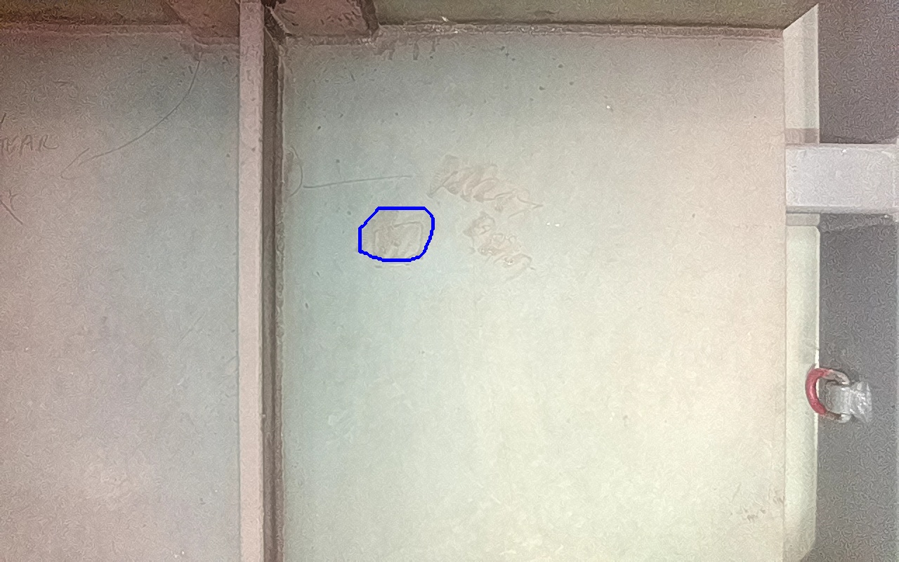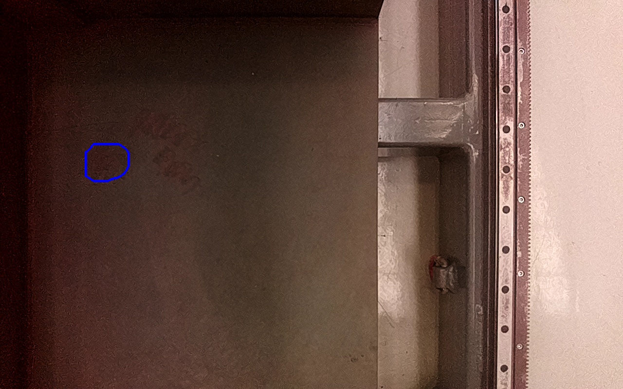 Rayaduras o zonas de metal expuestas con productos de óxido débilmente adherido.