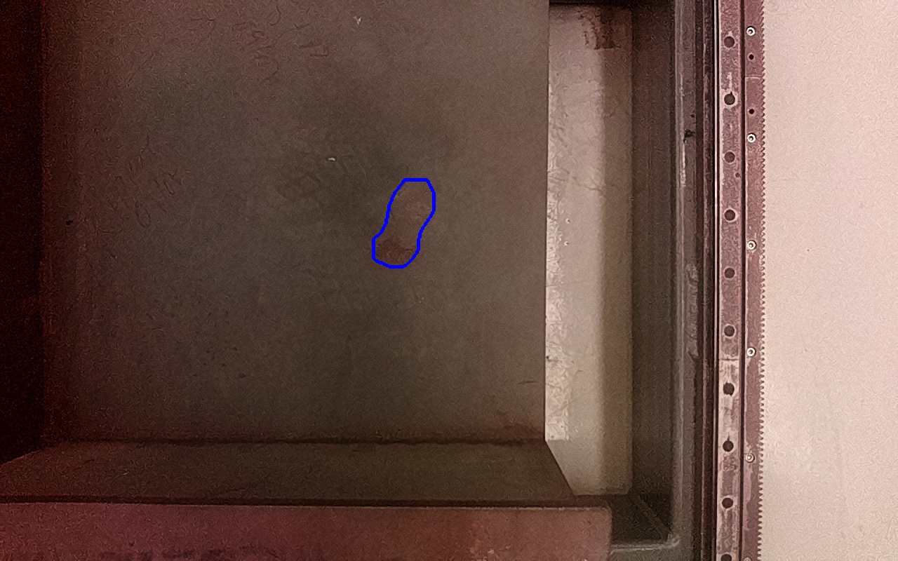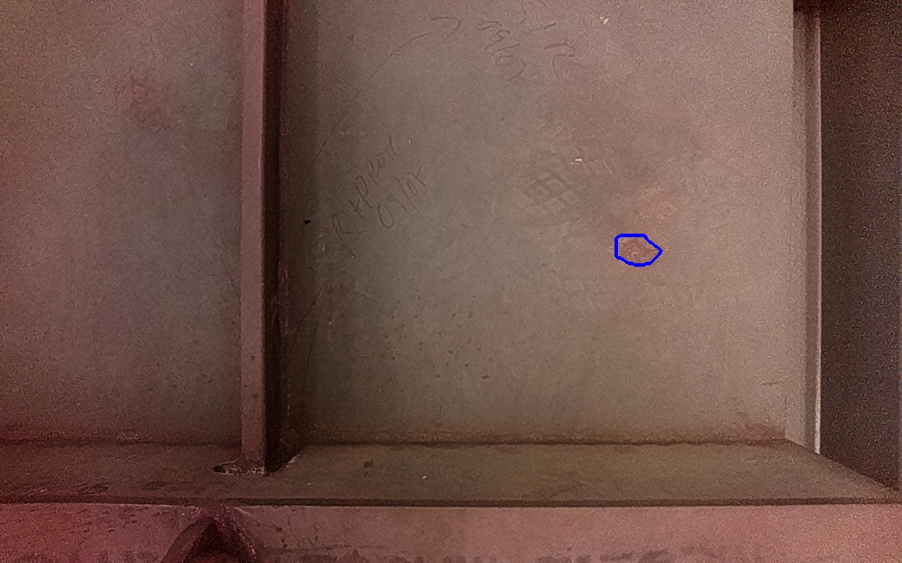 Rayaduras o zonas de metal expuestas con productos de óxido débilmente adherido.