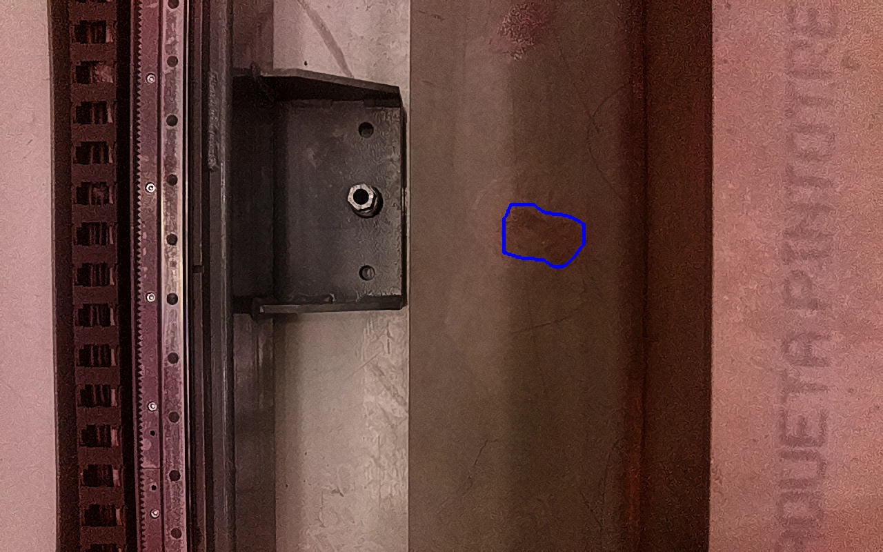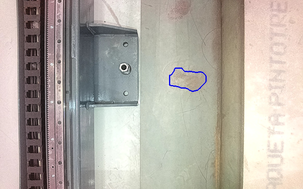 Rayaduras o zonas de metal expuestas con productos de óxido débilmente adherido.