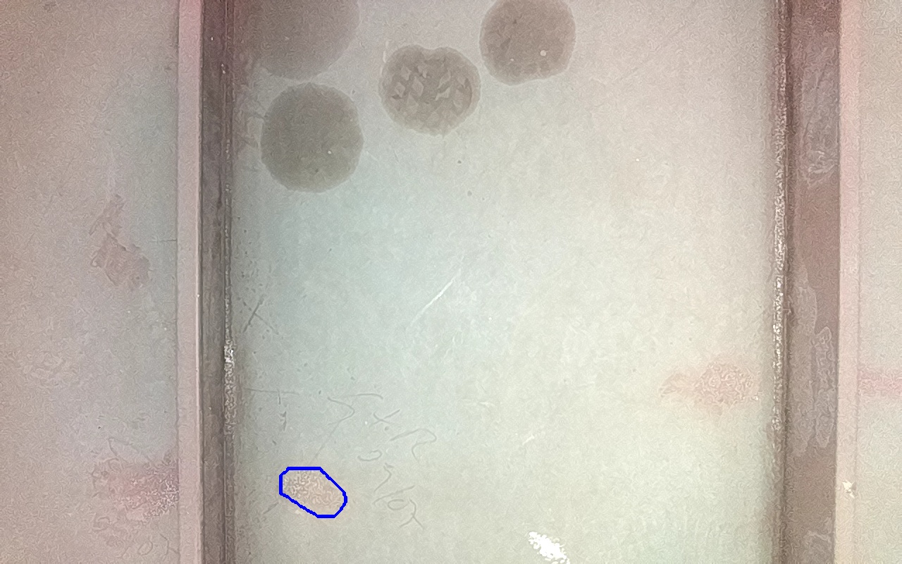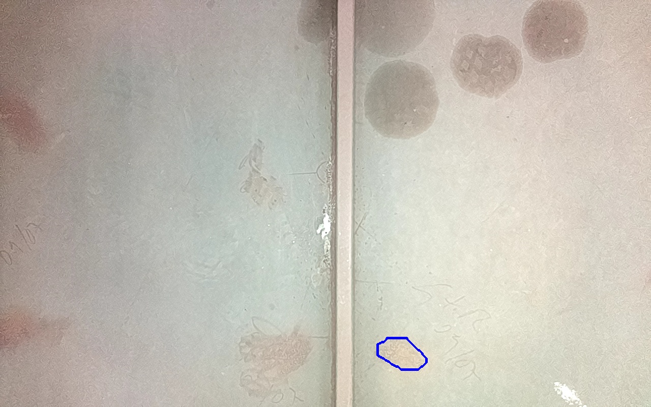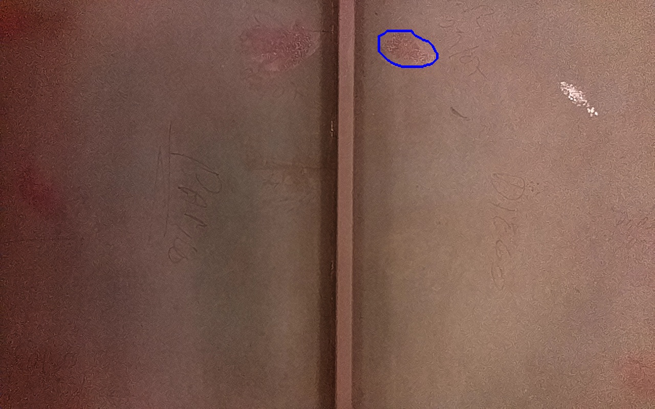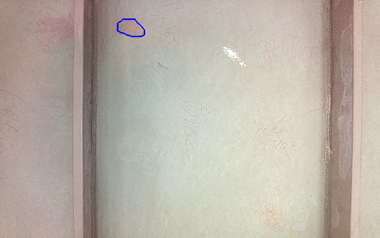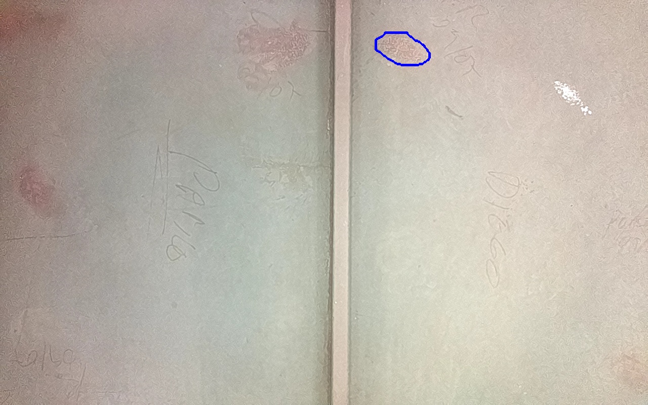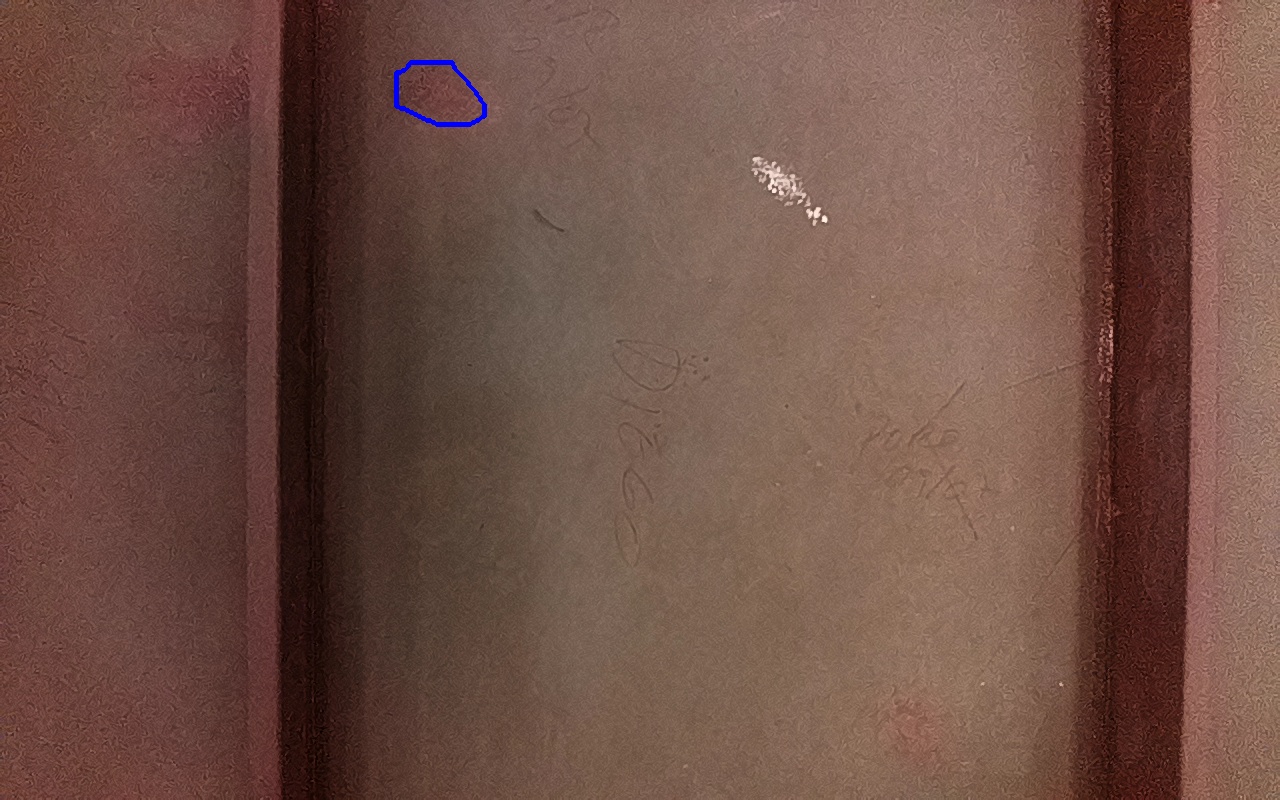 Rayaduras o zonas de metal expuestas con productos de óxido débilmente adherido.