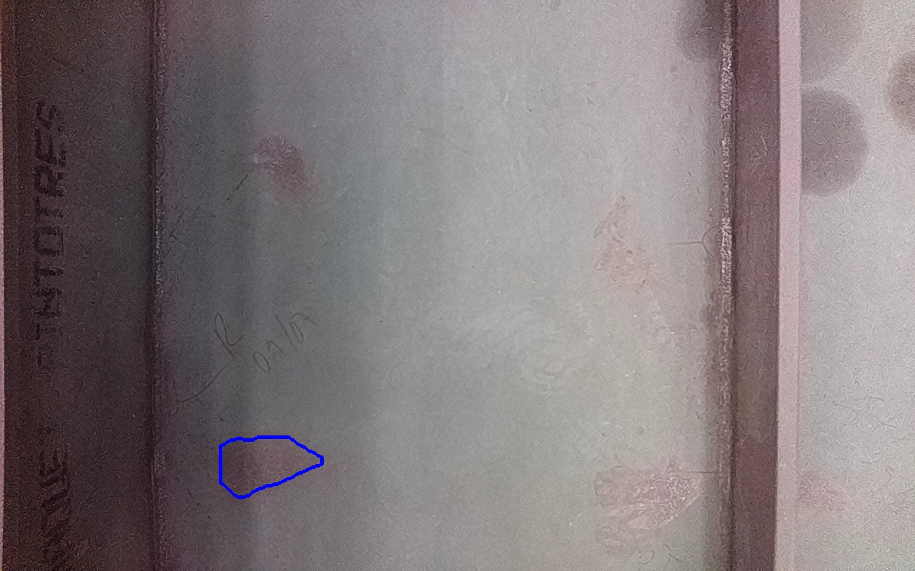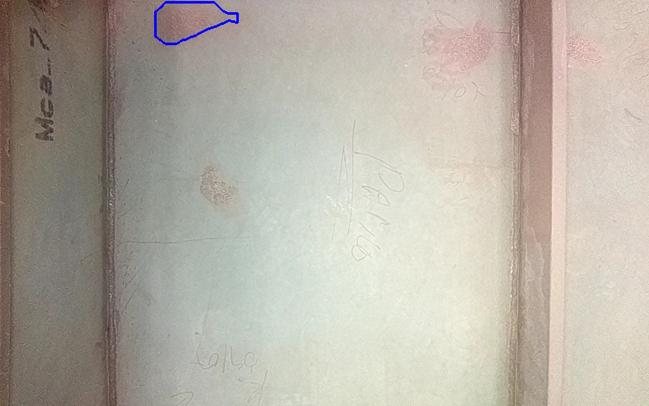 Rayaduras o zonas de metal expuestas con productos de óxido débilmente adherido.