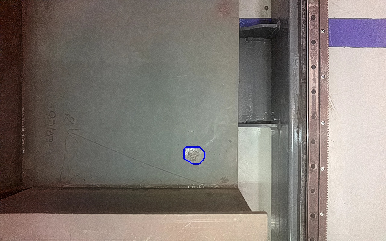 Rayaduras, marcas, daños por impacto, abrasión o zonas de metal expuestas con apariencia metálica y libre de productos de óxido o con trazas firmemente adheridas.