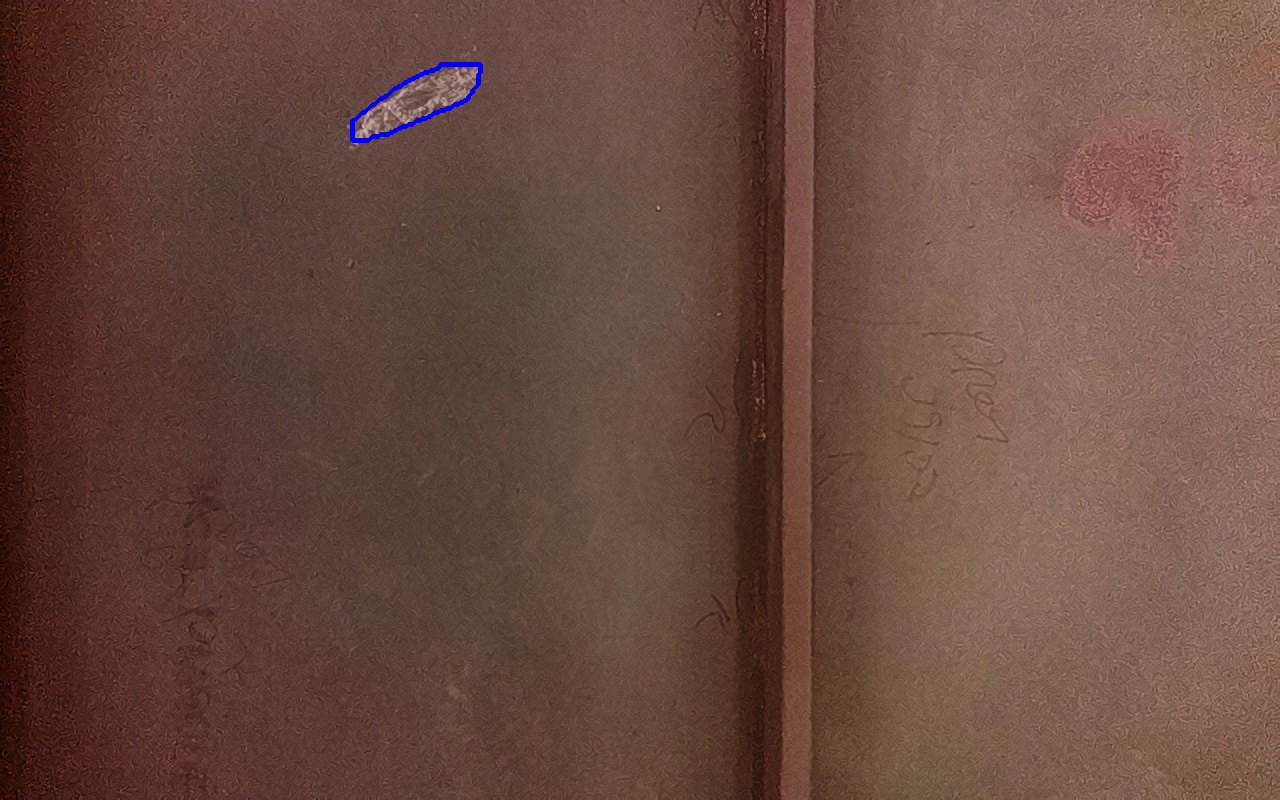 Rayaduras o zonas de metal expuestas con productos de óxido débilmente adherido.