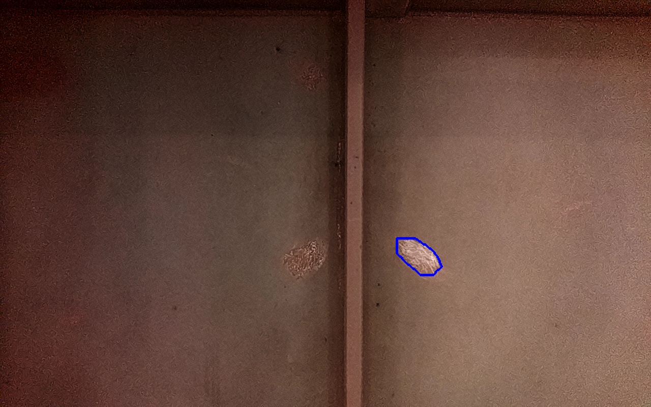 Rayaduras o zonas de metal expuestas con productos de óxido débilmente adherido.