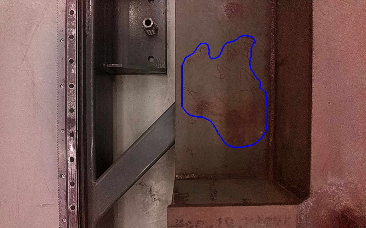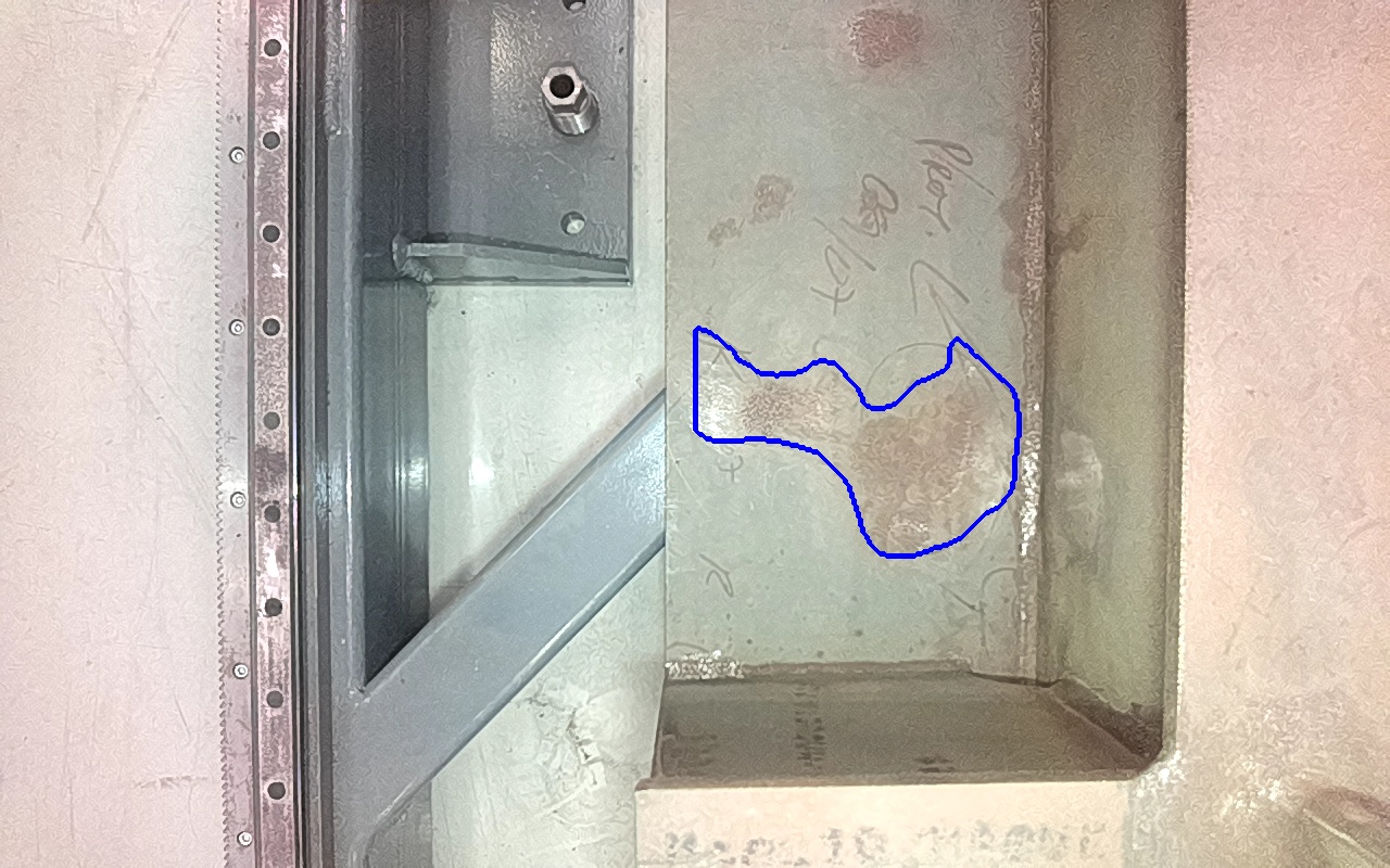 Rayaduras o zonas de metal expuestas con productos de óxido débilmente adherido.