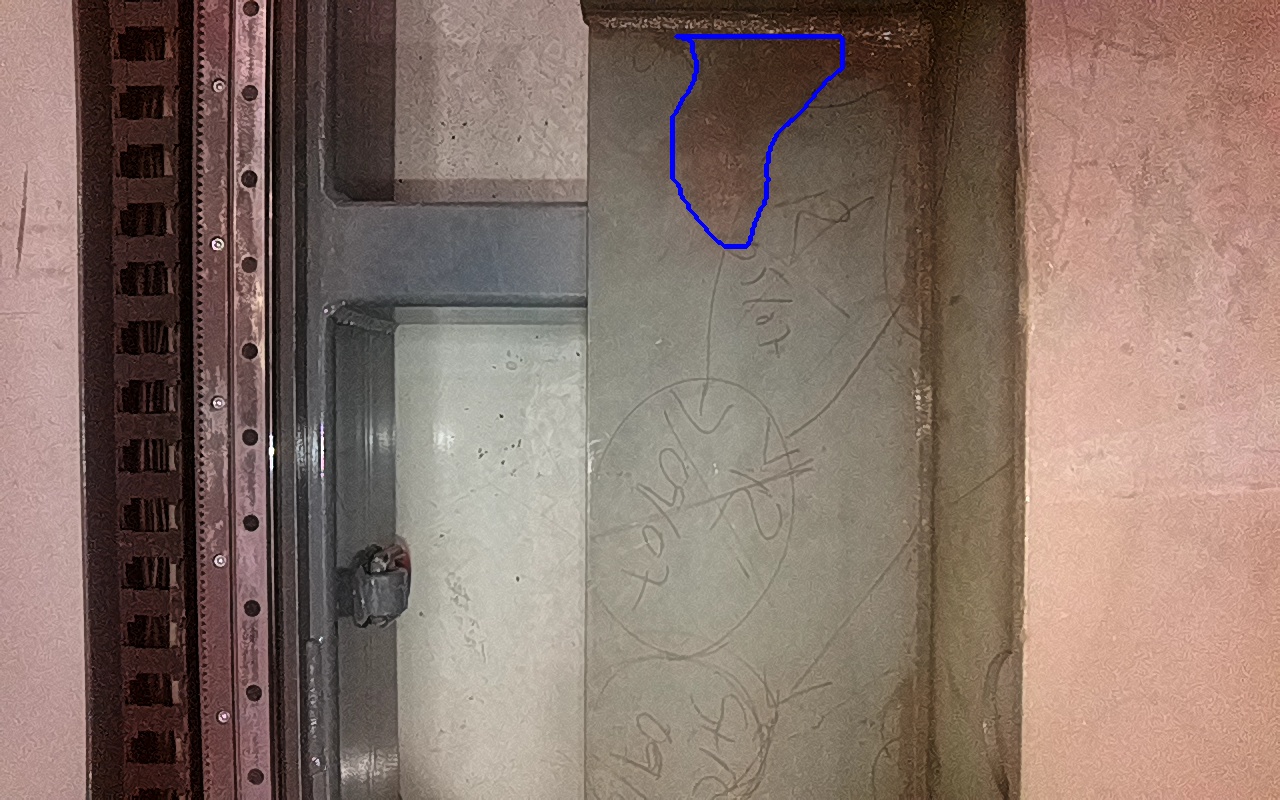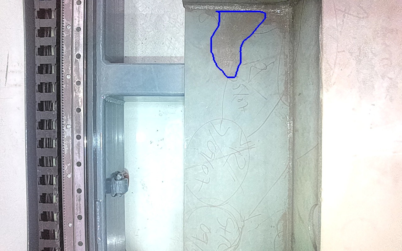 Rayaduras o zonas de metal expuestas con productos de óxido débilmente adherido.
