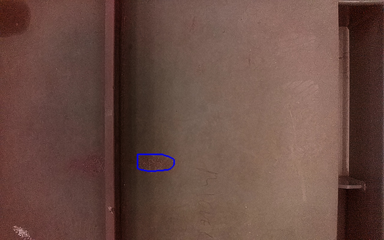 Rayaduras o zonas de metal expuestas con productos de óxido débilmente adherido.