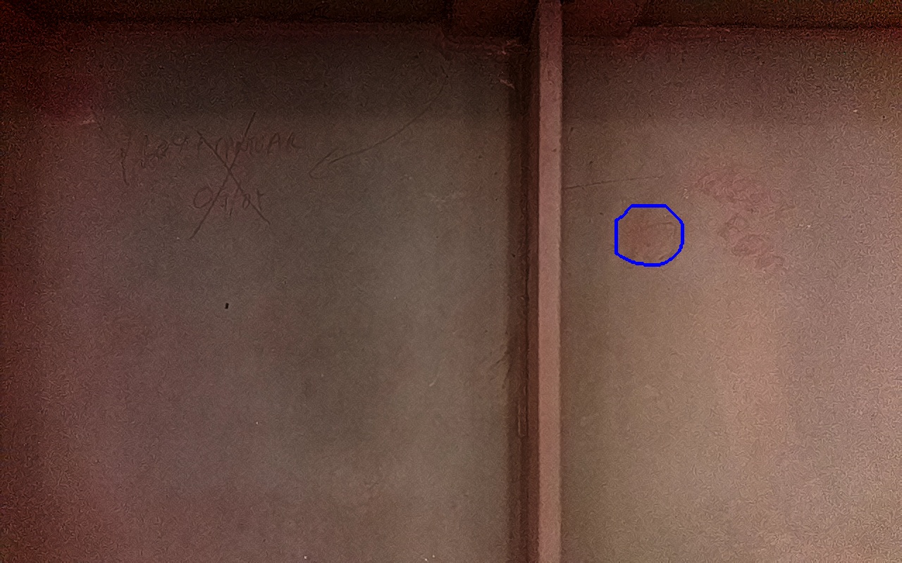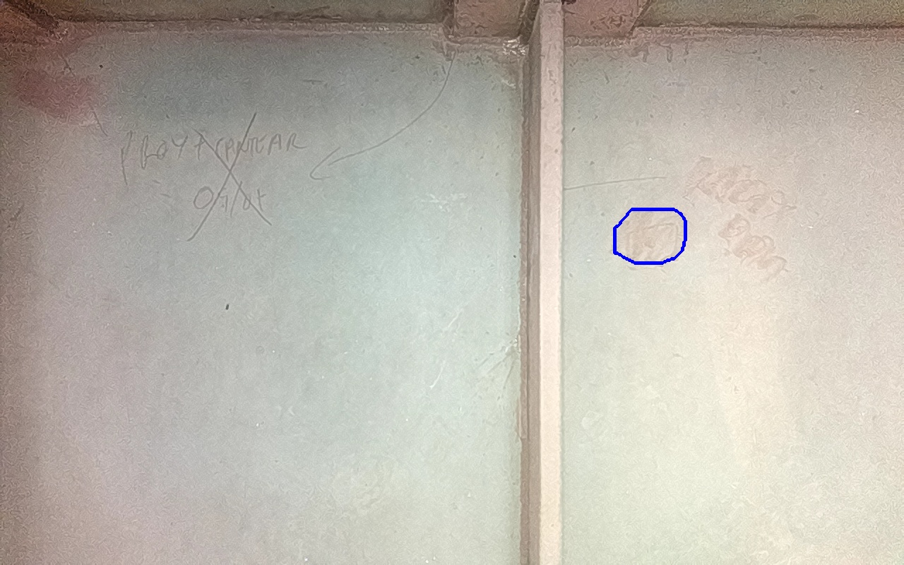 Rayaduras o zonas de metal expuestas con productos de óxido débilmente adherido.