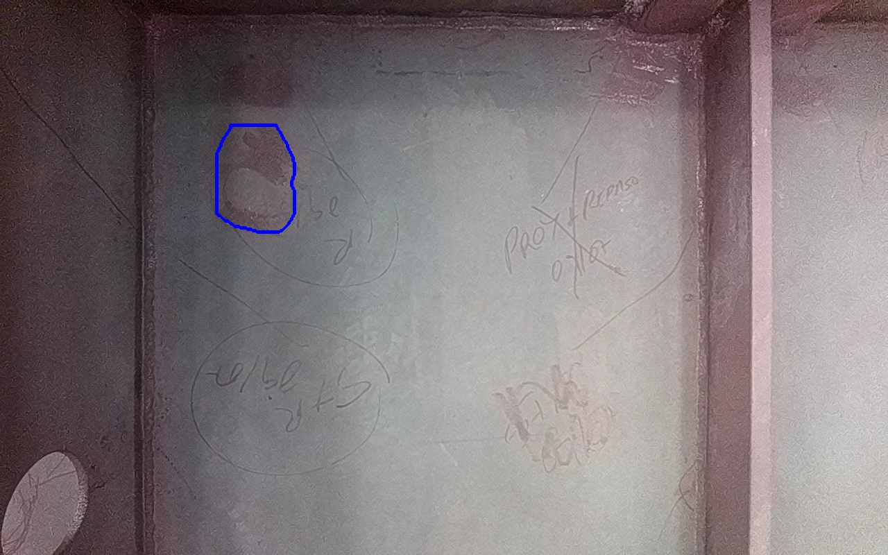 Rayaduras o zonas de metal expuestas con productos de óxido débilmente adherido.