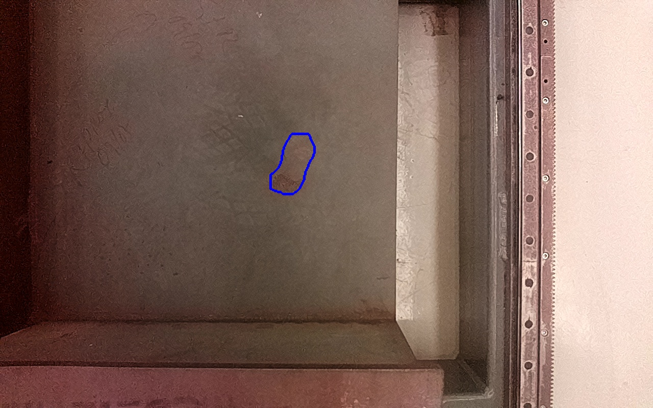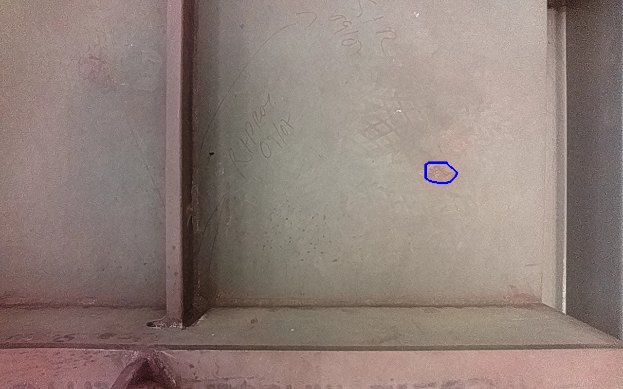 Rayaduras o zonas de metal expuestas con productos de óxido débilmente adherido.