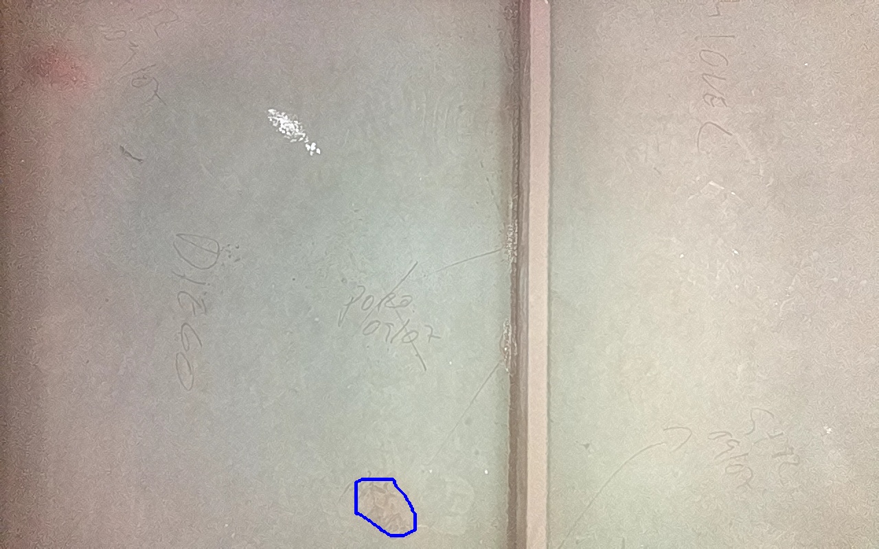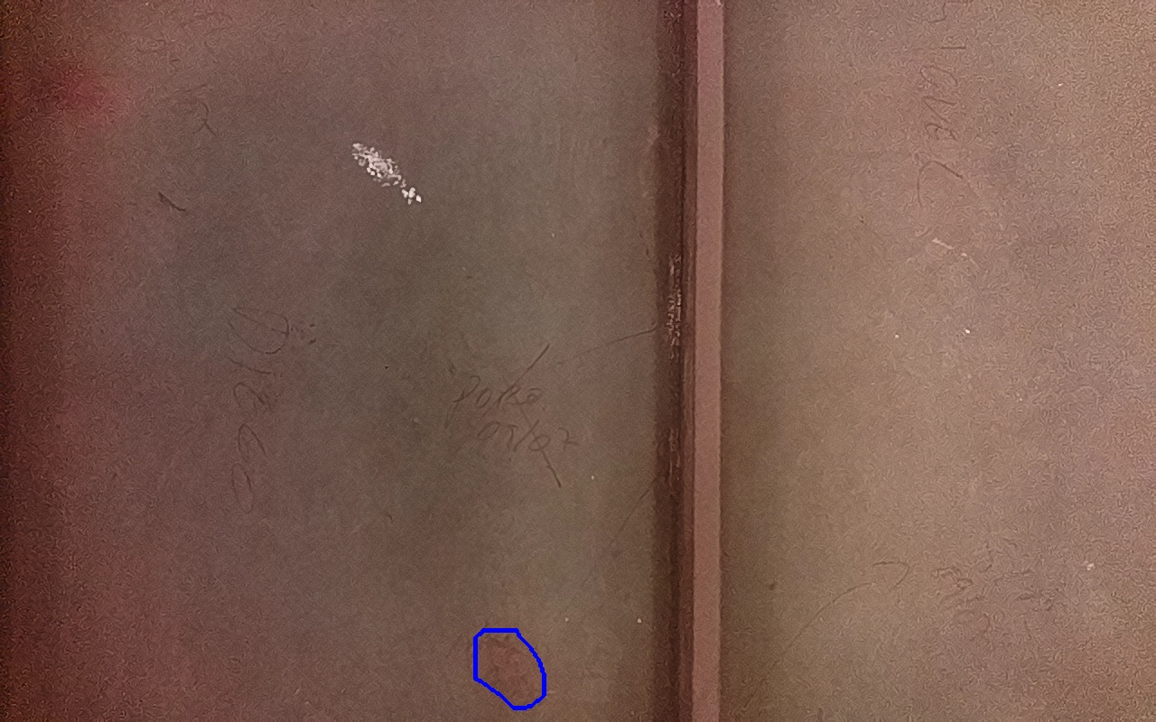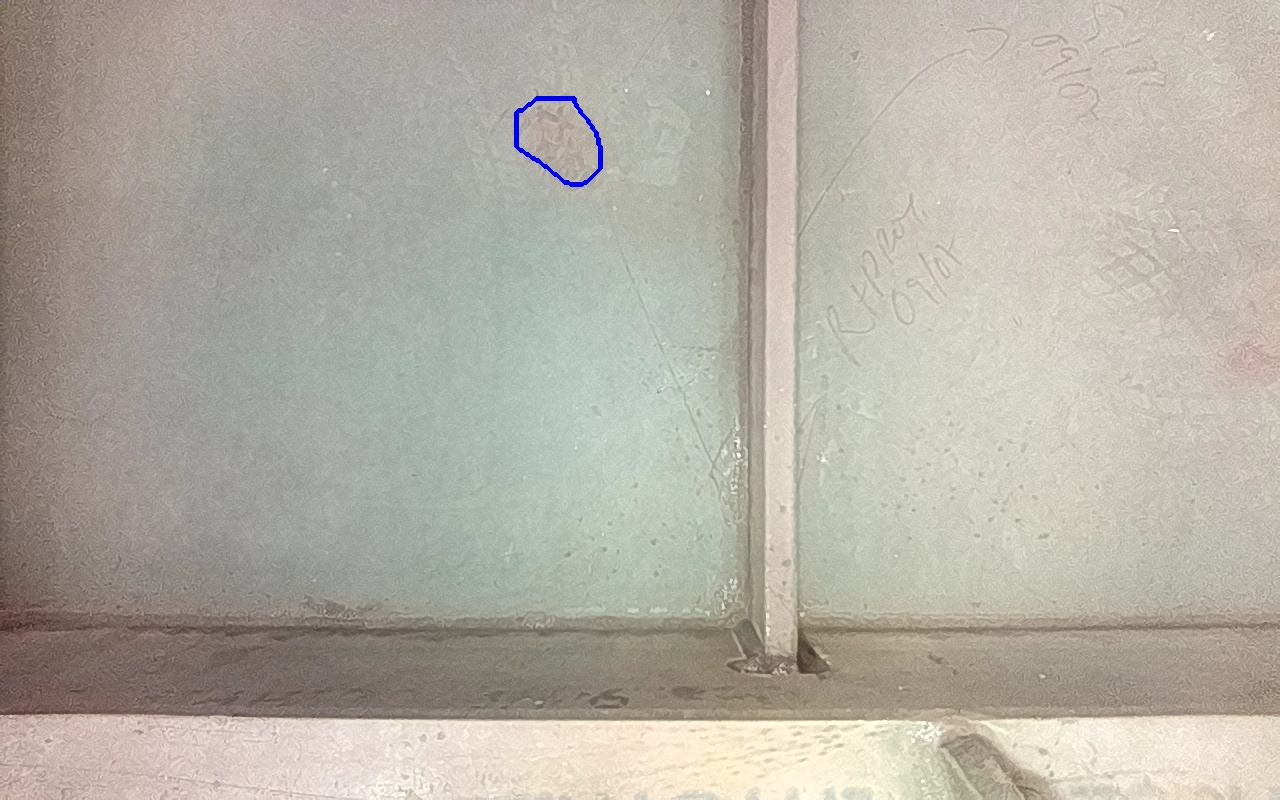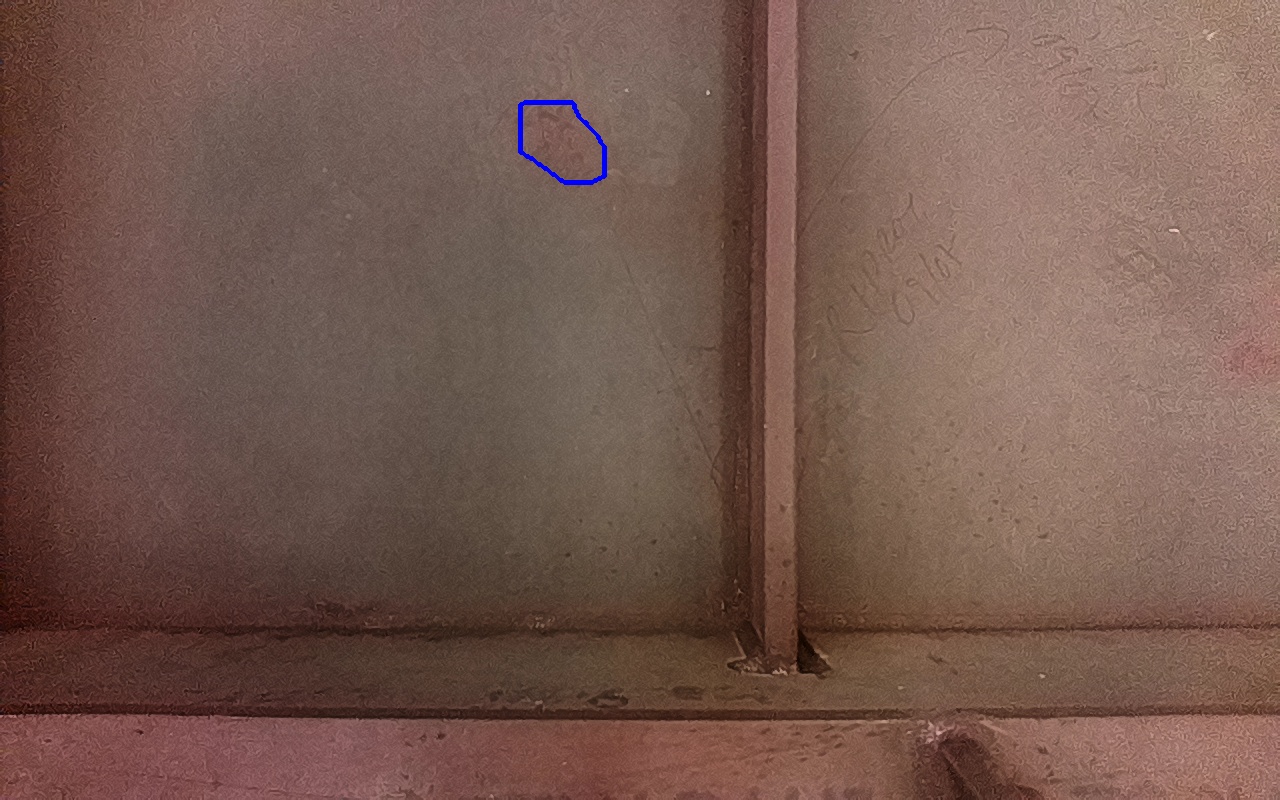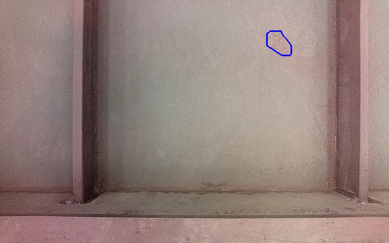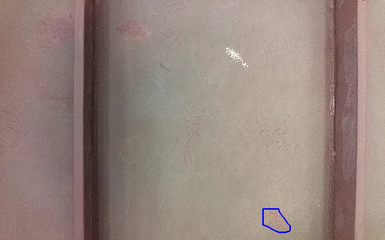 Rayaduras o zonas de metal expuestas con productos de óxido débilmente adherido.